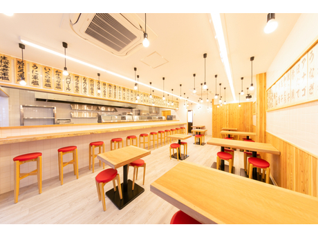 木目調のテーブルと白基調のフロアが広がる明るい店内には、カウンター席とテーブル席を完備。