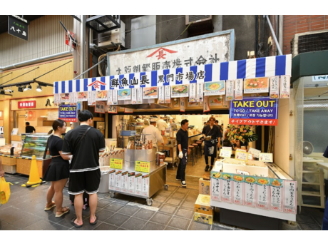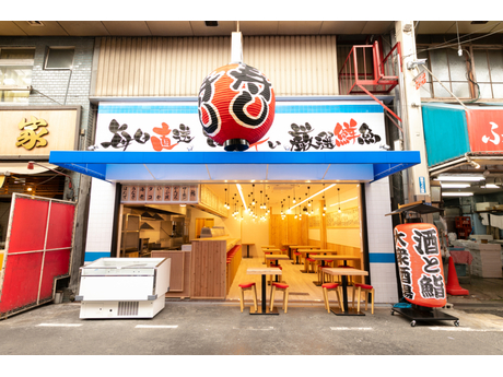 黒門市場の中心エリア・日本橋駅から徒歩1分と、圧倒的な好立地にある人気海鮮ブランド。