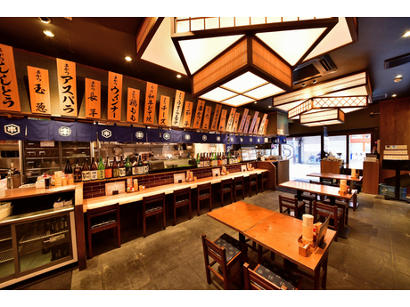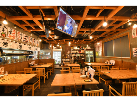 カウンターから座敷まで幅広い席を備えた大衆酒場スタイル。
