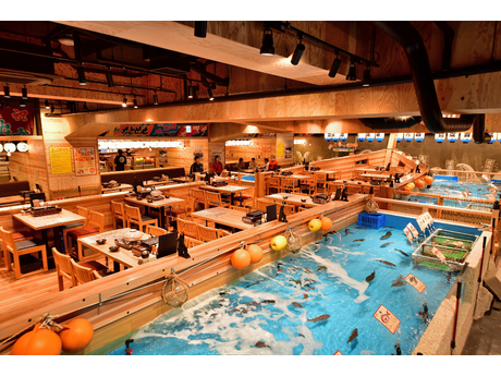 ジャンボ釣船 つり吉では、巨大いけすを備え、釣り上げた魚をその場で調理して提供する体験型飲食店!