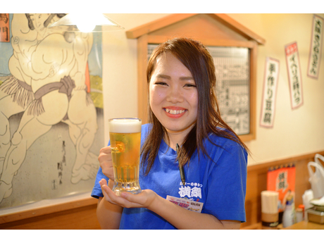 横綱では、名物の串かつはもちろん、たこ焼き・お好み焼き・どて焼き・かすうどんなど大阪名物が勢揃い。